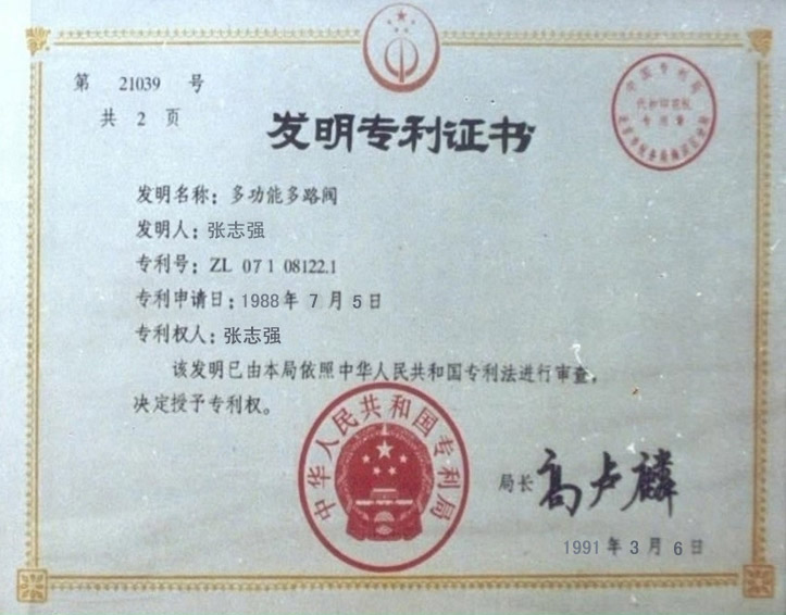 | 祝賀海龍王公司生產(chǎn)的平面閥獲得國家專(zhuān)利 |